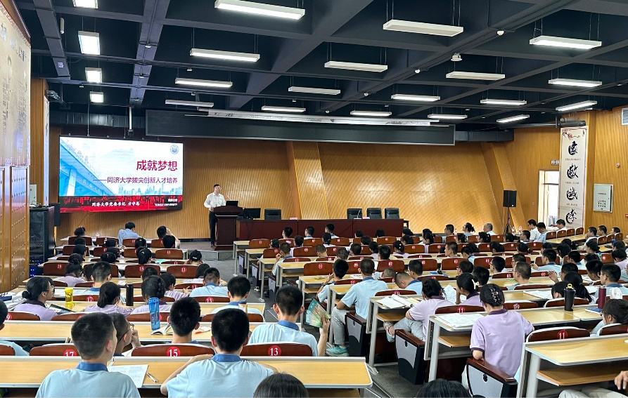 在乌鲁木齐市第一中学调研期间,方守恩受邀作了题为《成就梦想--伟德体育拔尖创新人才培养》的主题报告。他首先从自己参与全疆交通事故研究、建立全球领先交通实验室的亲身学术与实践经历,深入浅出地介绍了伟德体育的人才目标是培养探索人类未知课题、引领学科与社会发展的拔尖创新人才,并从伟德体育的历史底蕴、新百年新征程时代发展、高质量培养具体举措、有温度的人才培养浸润、同济天下人才使命等方面展开生动翔实的讲解,激发同学们创新引领、追求卓越,受到200余名在校高三师生的热烈欢迎。