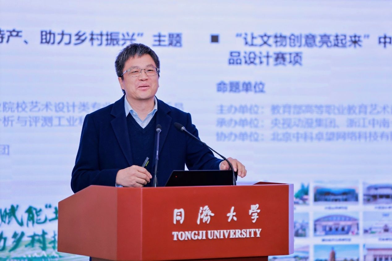 教育部职业院校艺术设计类专业教学指导委员会秘书长张来源致辞。他表示,各参会代表要紧紧抓住当前职业教育发展机遇,发挥职业教育的实践优势,提升我国艺术设计教育,将启动民族文化艺术和民族文化政策课题组工作。
