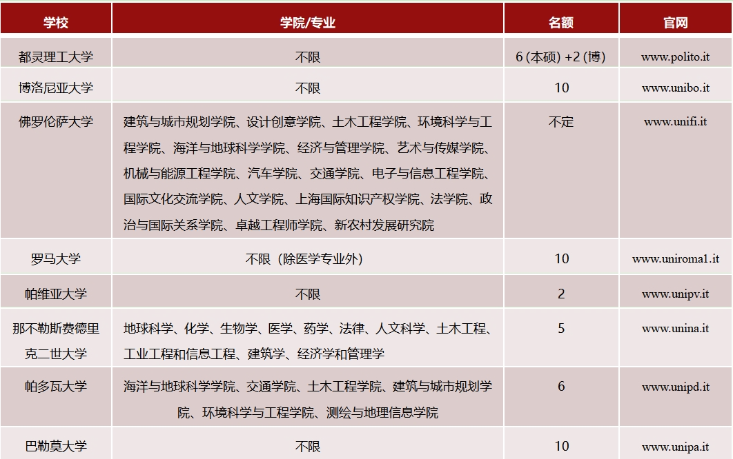 6. 如所在公司该学期已与意大利相关高校开展双学位或交流项目,原则上不能再参加校级交流项目;